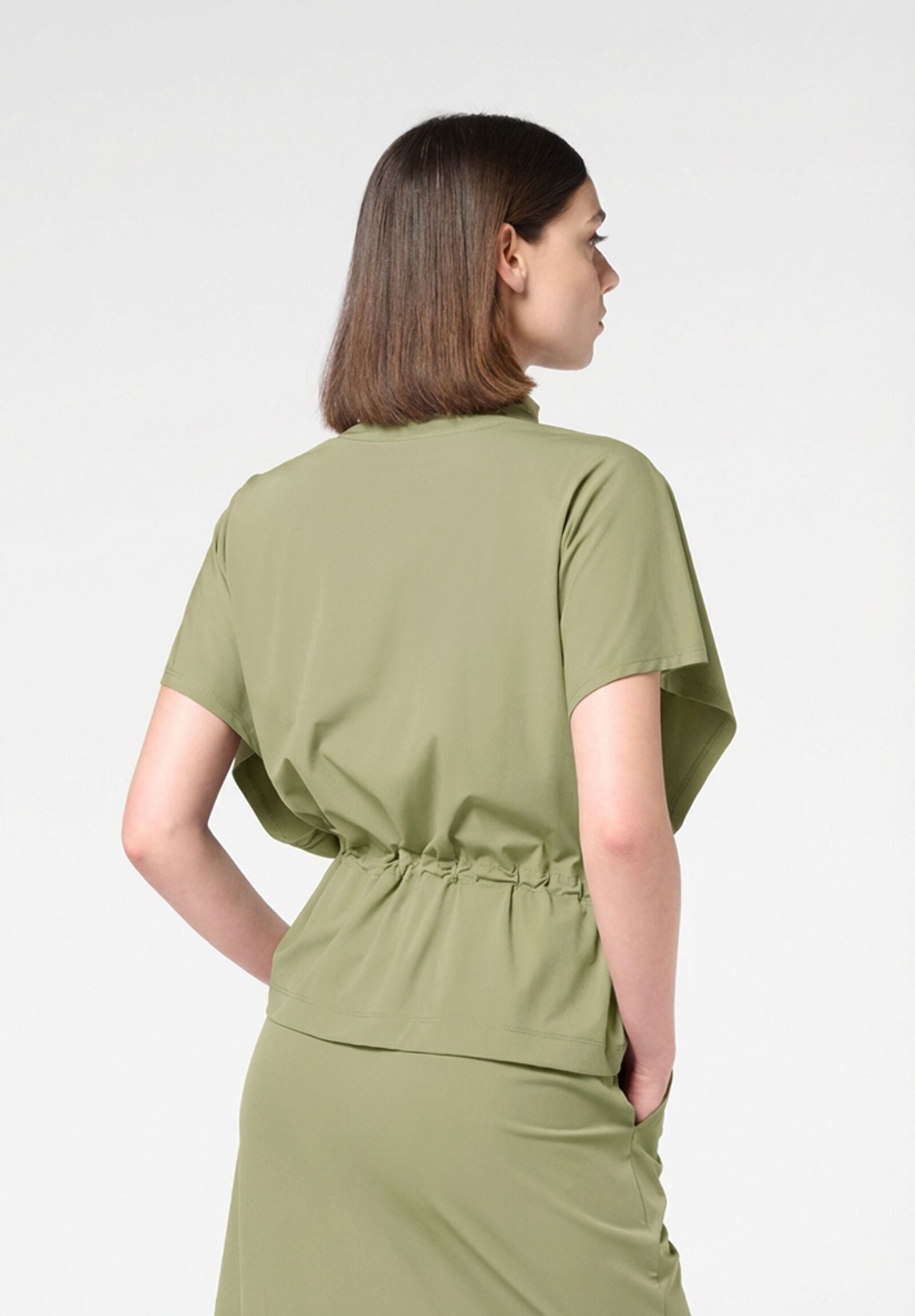 The New Travel Parka is crafted from a lightweight, stretch technical fabric, ideal for accompanying you on your travels and keeping pace with the dynamic rhythm of everyday life. Its practical and comfortable design ensures maximum freedom of movement, whilst always maintaining a neat and contemporary look. Fashion details — such as the drawstring waist, front zip and knot fastening — add a modern, feminine touch, allowing you to customise the fit and flatter your silhouette with discretion. Versatile and functional, this parka is an essential all-rounder for tackling journeys and hectic days in style. For a coordinated and impeccable look, it pairs perfectly with bottoms from the same New Travel range. An essential, practical and sophisticated piece, designed for those seeking comfort and style in one go.
