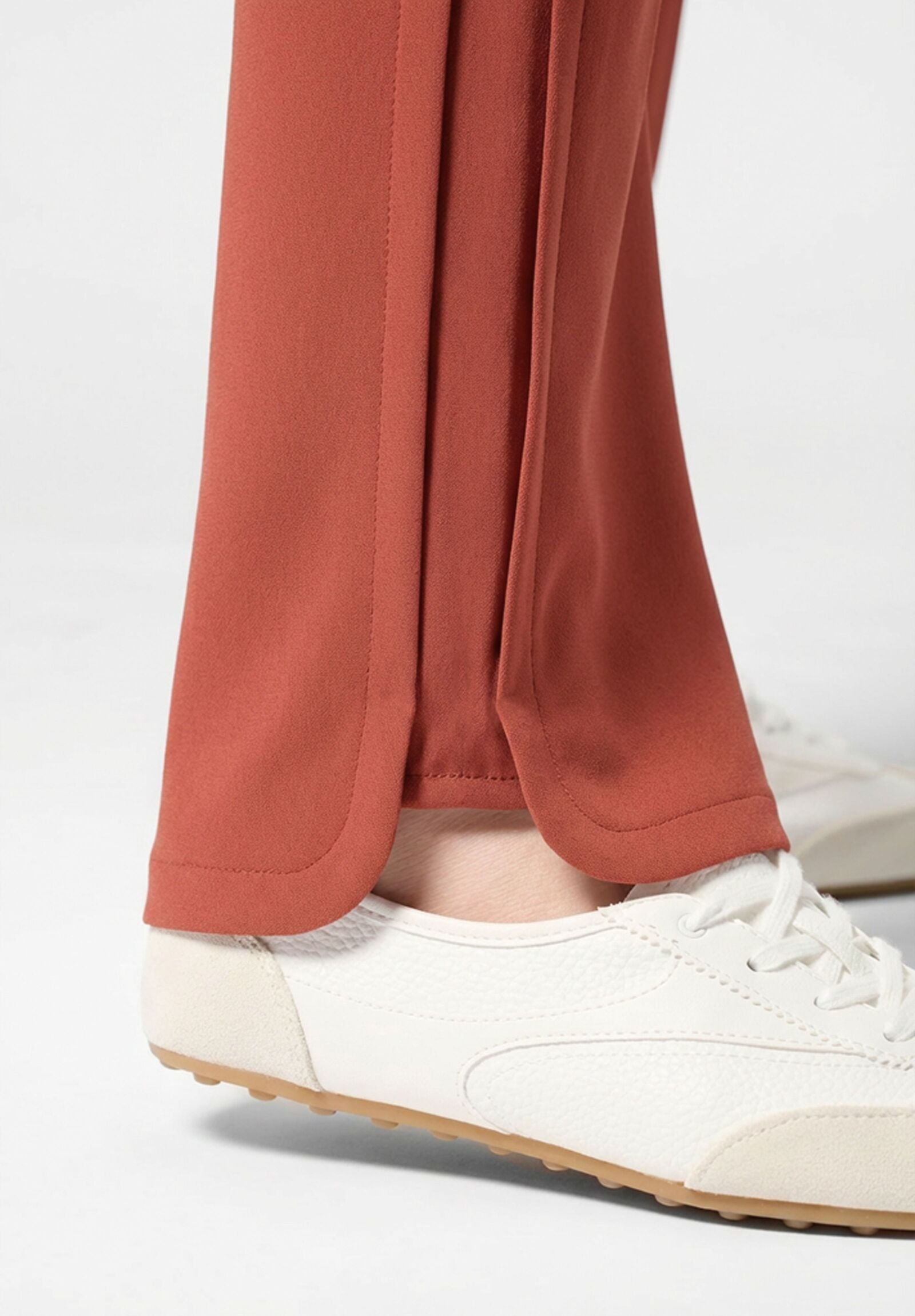 The Oroblù Boarding Pass pants are crafted from soft technical modal fabric offering a fluid, straight and comfortable line. Glossy satin inserts running along the sides add a touch of contemporary elegance, while the rounded hem creates a refined, feminine detail. Perfect paired with the tops from the same series, these pants are ideal for coordinated and sophisticated looks for leisure, travel or stylish relaxation.