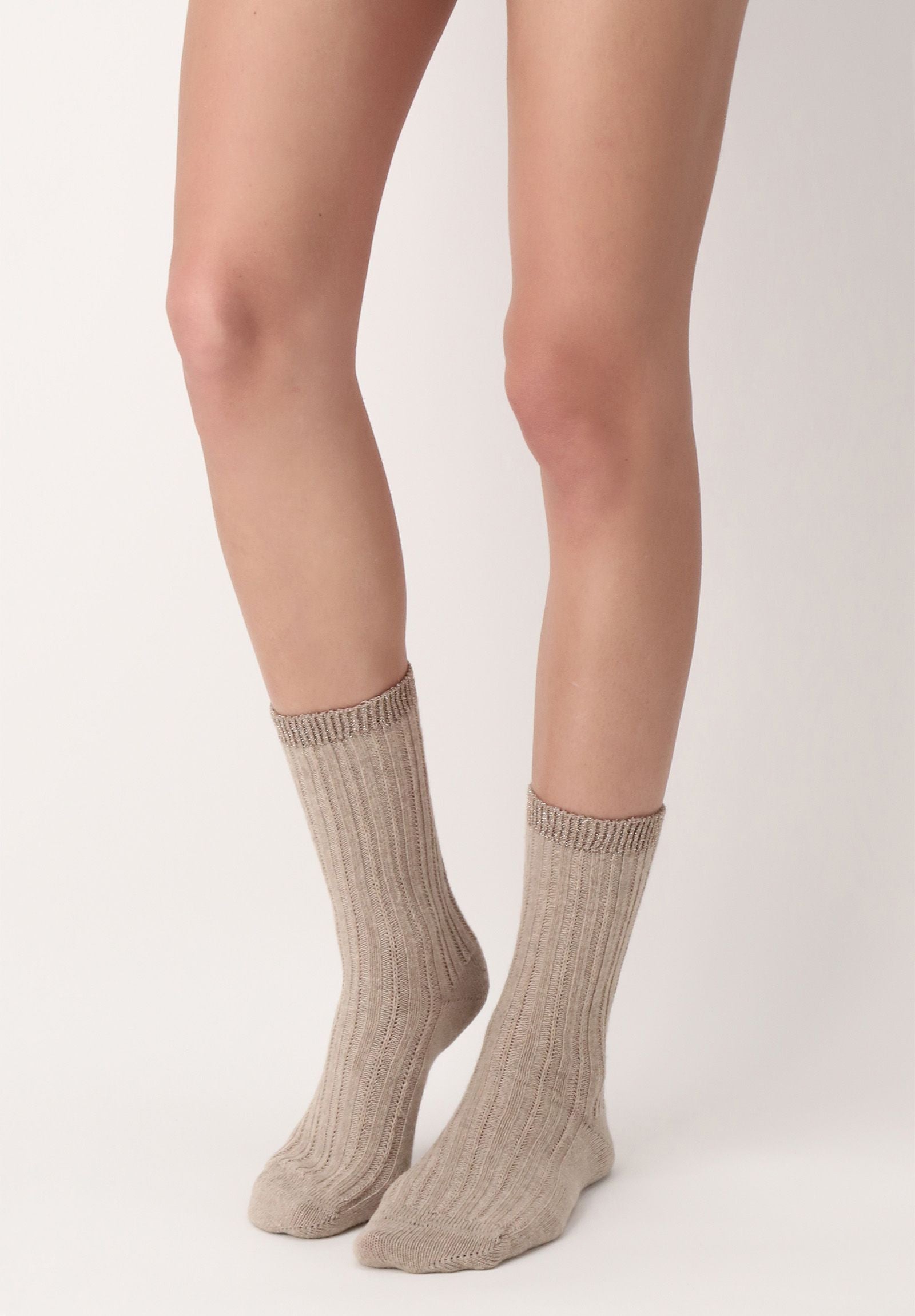 Sock made of soft cotton and soft, high-quality alpaca wool, with an ajurèe pattern. Alpaca wool is known for its softness, lightness and thermal characteristics. It warms the foot without being thick. The cuff is soft, comfortable and profiled with lamé. Warm and high, it is also a special sock worn repaired with ankle boots and winter boots.