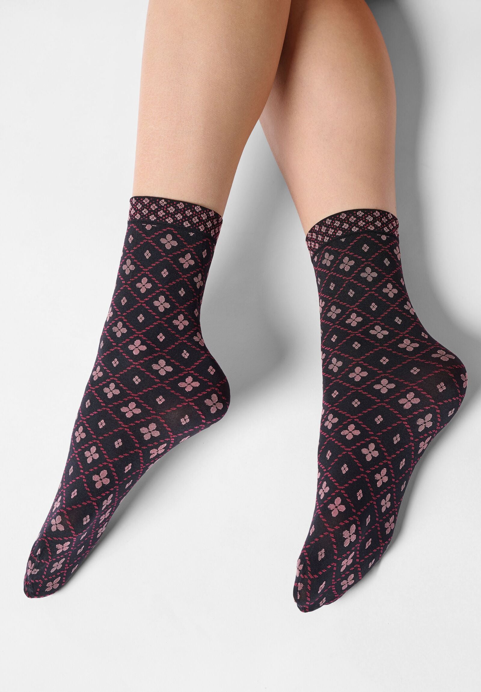 Calzini coprenti in bipack, venduti a due paia e proposti in due diverse fantasie. Il polsino con motivo fantasia aggiunge un tocco di originalità e stile. Morbidi e confortevoli, sono perfetti per completare ogni look, offrendo versatilità e comfort in un'unica confezione.