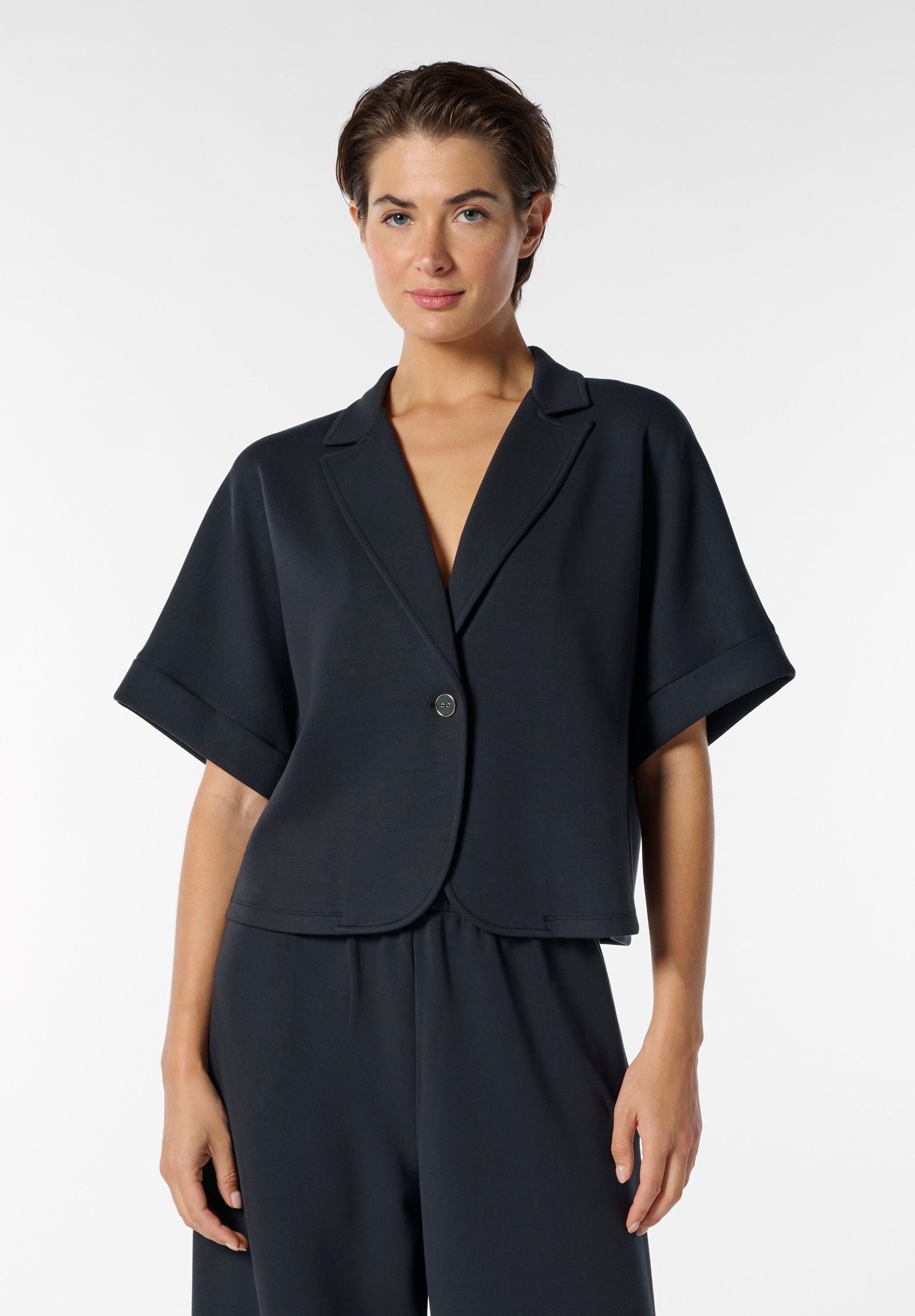 Dal taglio dritto e pulito, questa giacca a manica corta in morbido tessuto tecnico si distingue per il suo stile essenziale ma sofisticato. È sfoderata, con revers classici e chiusura a un bottone, per un look leggero e contemporaneo. Perfetta da indossare con i pantaloni coordinati della stessa serie Boarding Pass o sopra le maglie della linea Perfect Line, per creare outfit versatili e curati in ogni dettaglio.